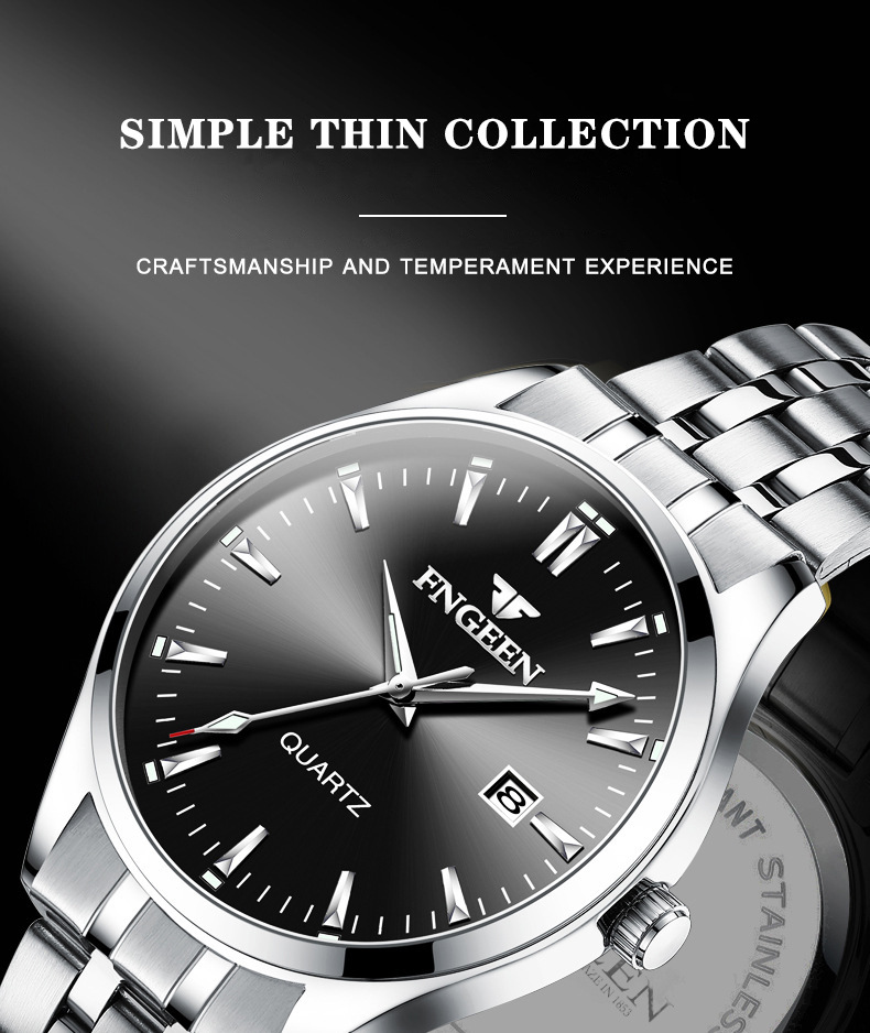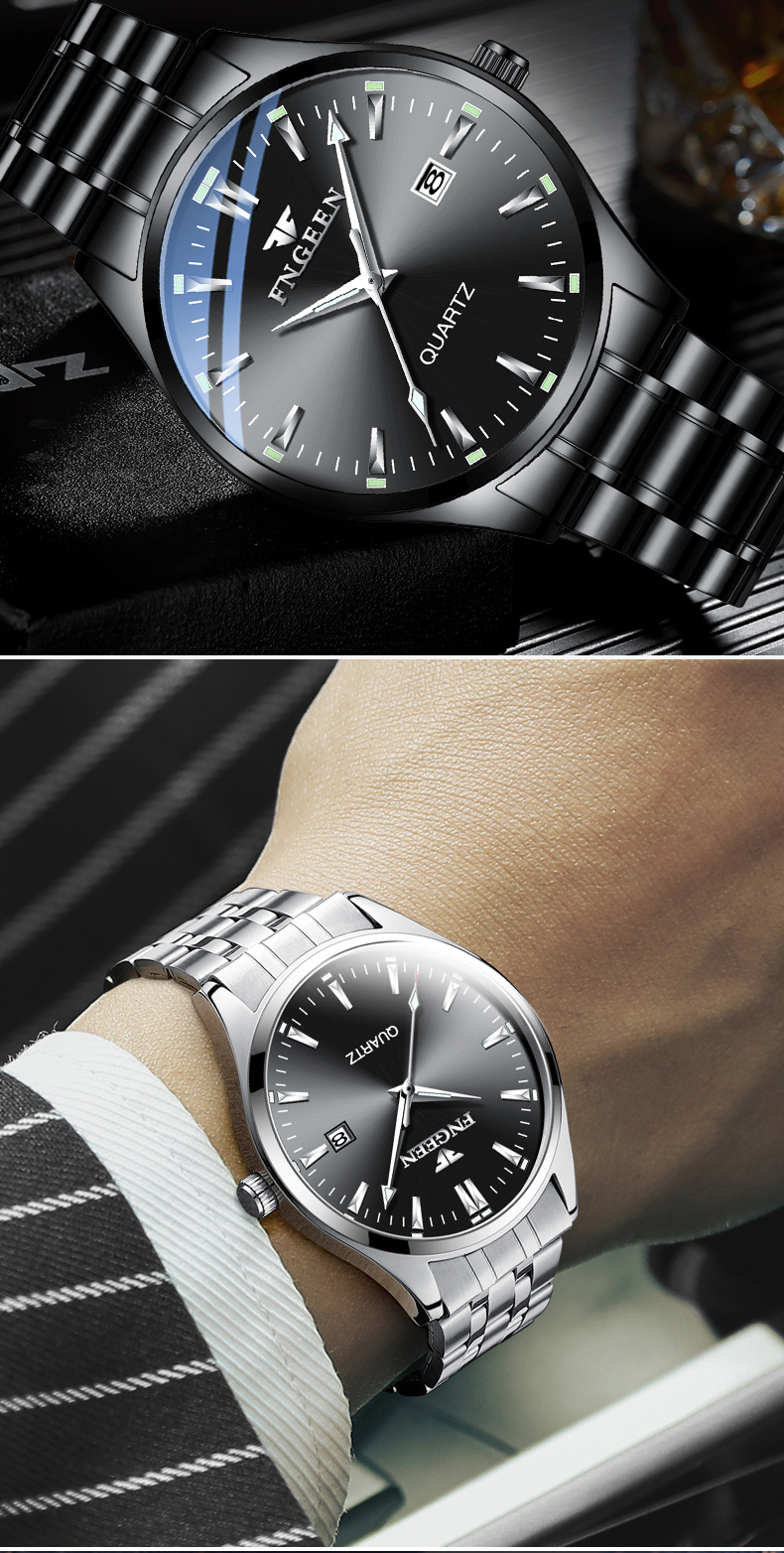 New Concept Korean Style Trendy Student Watches Men's Quartz Black Calendar Internet Celebrity Ultra-thin Waterproof Men's Watch